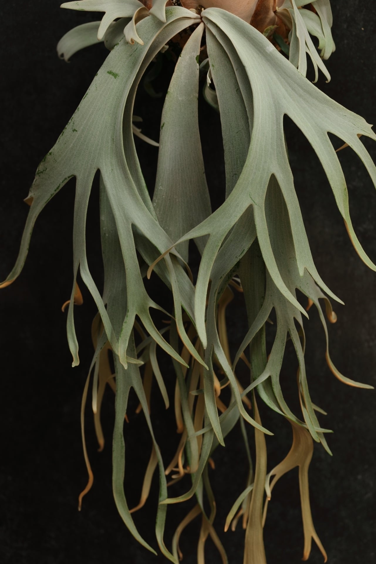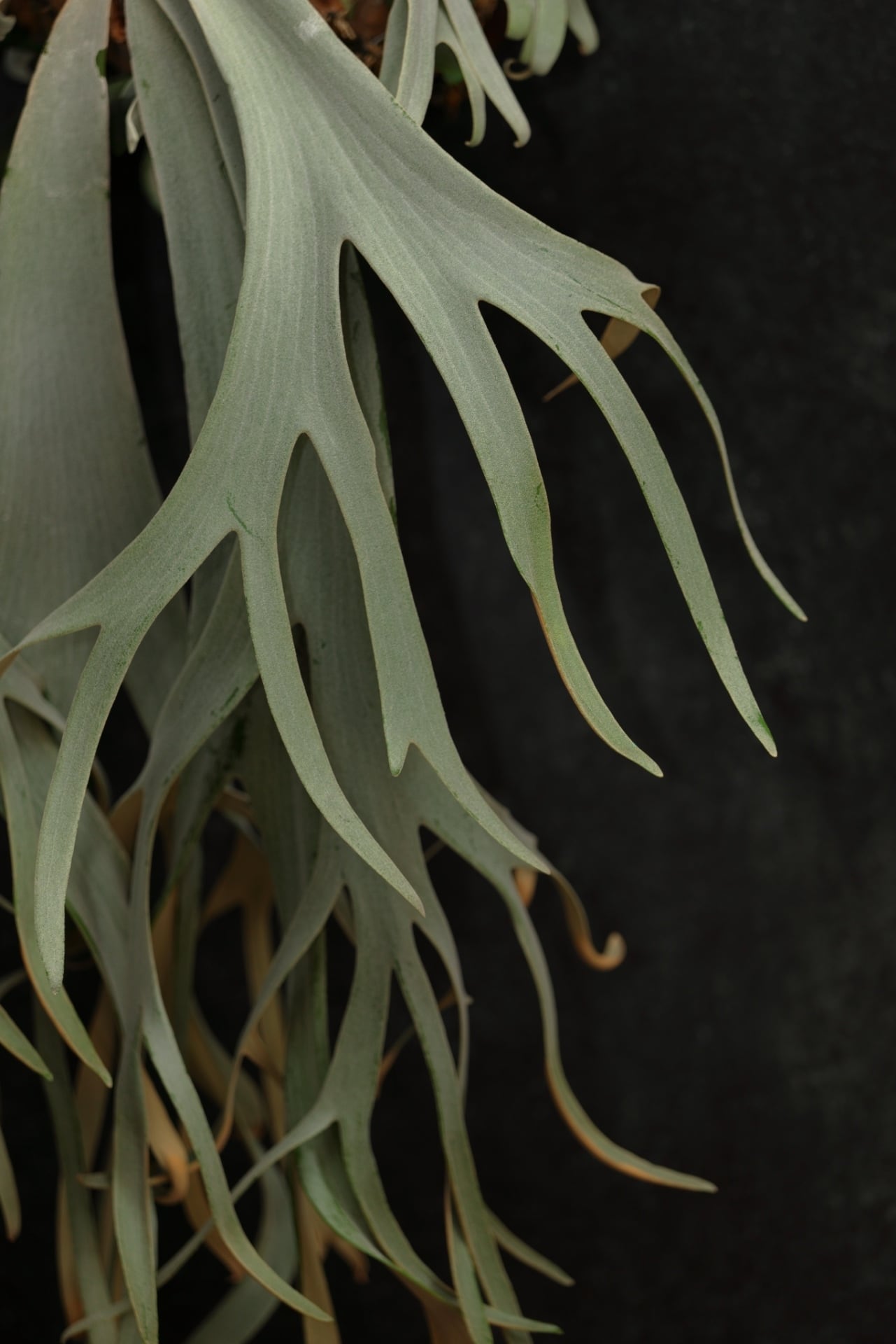 幅広に伸びる胞子葉は、細かなトリコームに覆われ、どこか真珠を思わせる上品な質感が特徴。